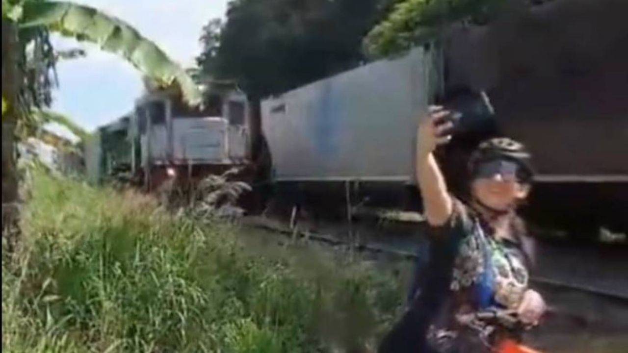 En un video que circula en redes sociales, se puede observar cómo un grupo de ciclistas se detiene al percatarse del tren que se aproxima. Mientras se preparan para tomar fotografías, una de las mujeres se aleja del grupo para acercarse más a la locomotora.